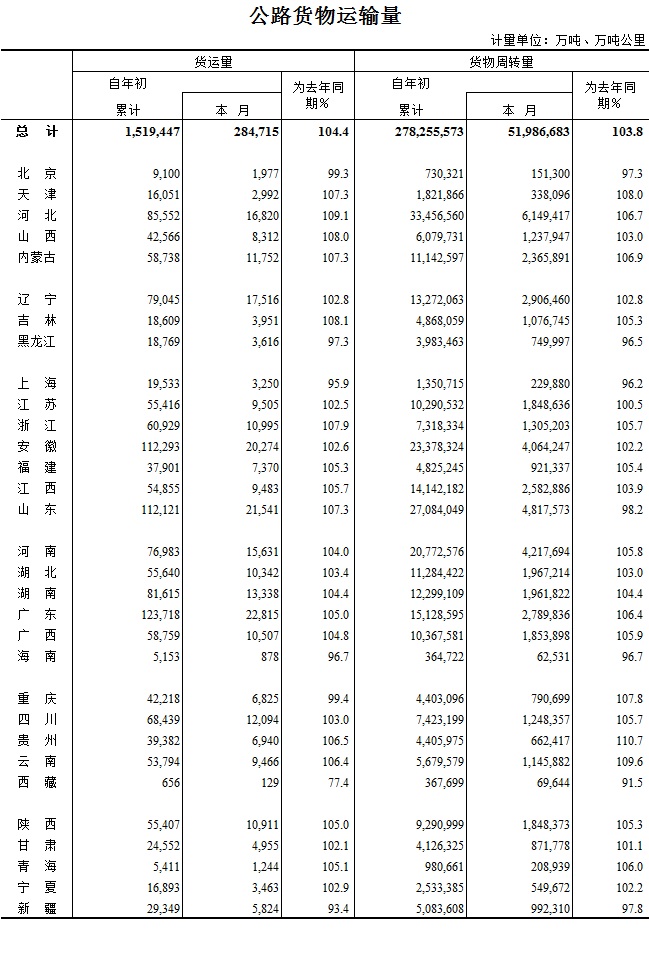 2016年6月公路货物运输量